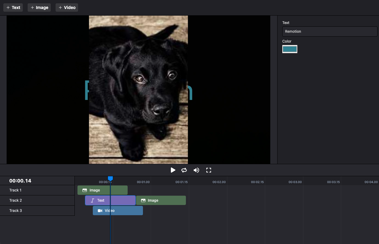 importReact , {useMemo ,useState } from 'react';import {Player } from '@remotion/player';import type {Item } from './types';import {Main } from './remotion/Main';typeTrack = {name : string;items :Item [];};export constEditor = () => {const [tracks ,setTracks ] =useState <Track []>([{name : 'Track 1',items : []},{name : 'Track 2',items : []},]);constinputProps =useMemo (() => {return {tracks ,};}, [tracks ]);return (<><Player component ={Main }fps ={30}inputProps ={inputProps }durationInFrames ={600}compositionWidth ={1280}compositionHeight ={720} /></>);};